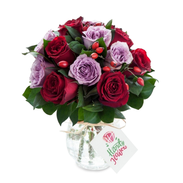 There is nothing like the intensity and gracefulness, gathered in this bouquet. Velvet and purple shade roses make a great duo that is not to be left behind.