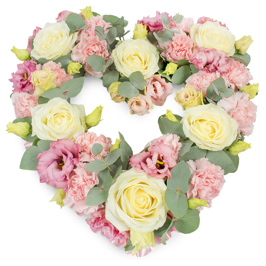 Express your deepest gratitude and love with our unique open heart bouquet. This stunning arrangement features a harmonious blend of elegant white roses, delicate pink carnations, graceful pink lisianthus, and lush eucalyptus leaves, creating a captivating display of color and texture.